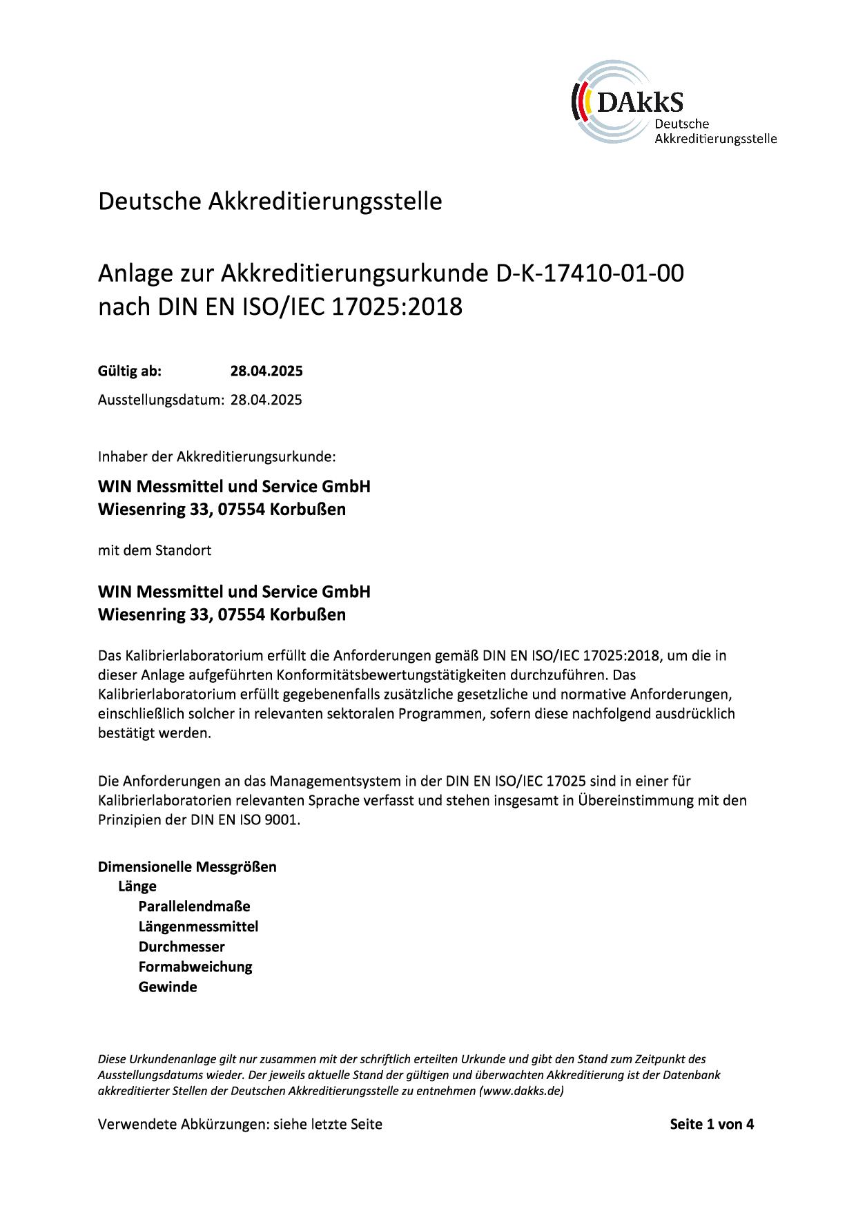 Anlage zur Akkreditierungsurkunde D-K-17410-01-00